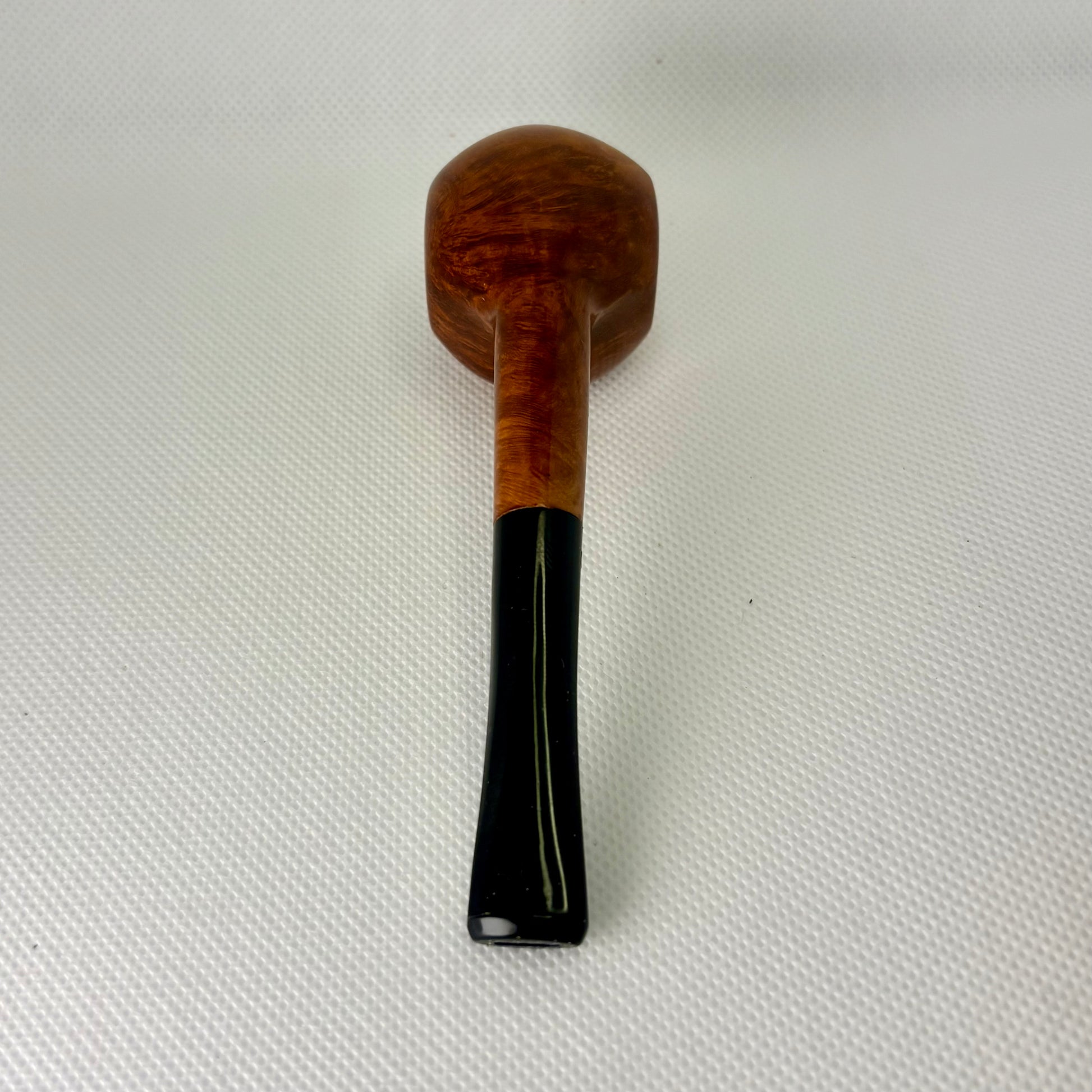 The pipe features a compact straight billiard profile with a gently rounded bowl and clean, flowing lines. The warm, honey-brown smooth finish highlights natural grain movement while maintaining a restrained, traditional appearance. The rim is left clean and understated, keeping the focus on form rather than embellishment.