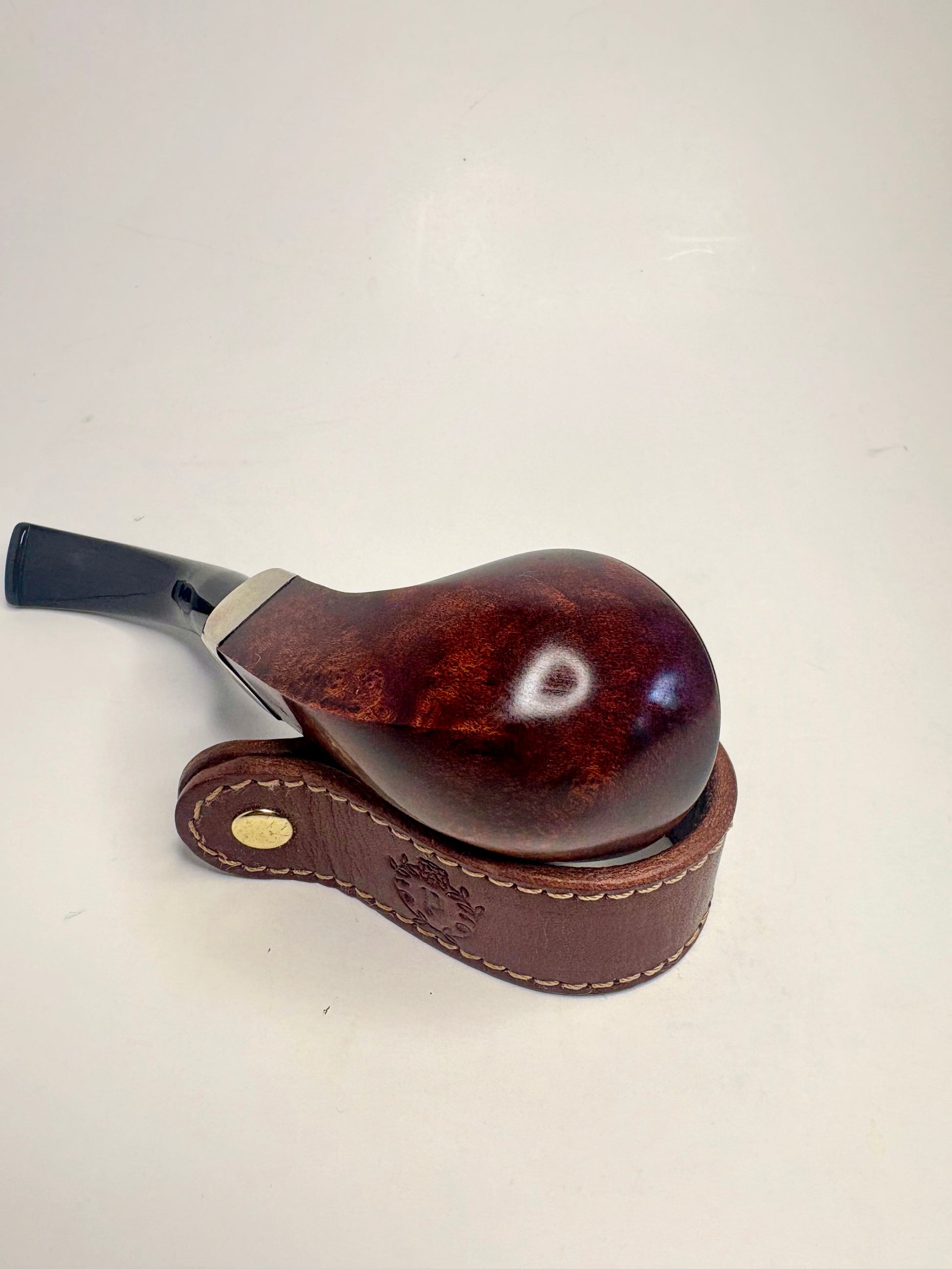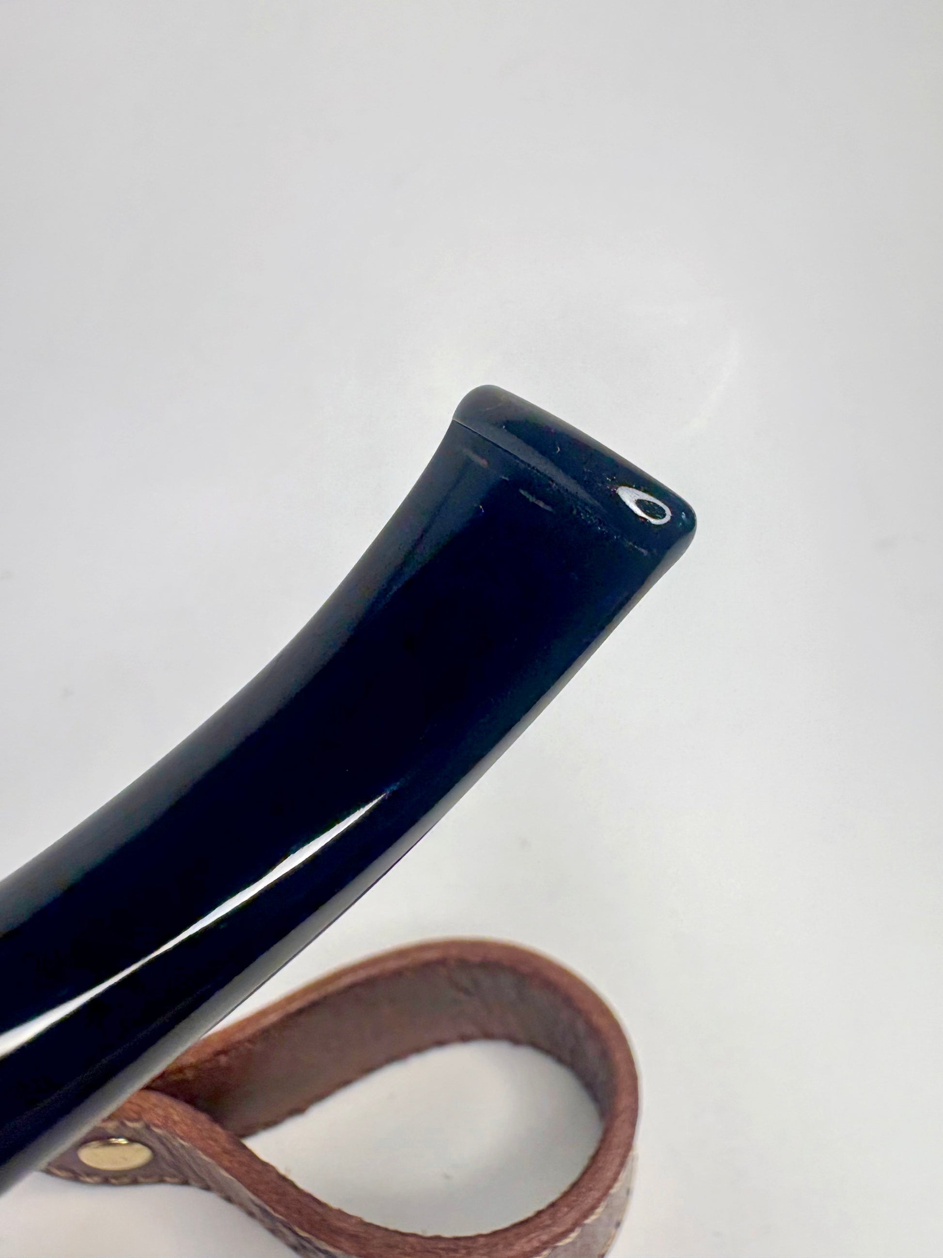 The 80s is Peterson’s heavier, bent Bulldog shape — broad bowl, strong lines, and a thick diamond shank that carries as much presence as the bowl itself. It has the same compact, low profile seen in the 999 Rhodesian, including the paired beadlines around the rim, but with a diamond shank instead of round. It’s the bent counterpart to the straight 150 Bulldog, giving the same classic look but with a more relaxed, jaw-friendly bend. It’s a traditional Bulldog with the unmistakable Peterson heft and feel.