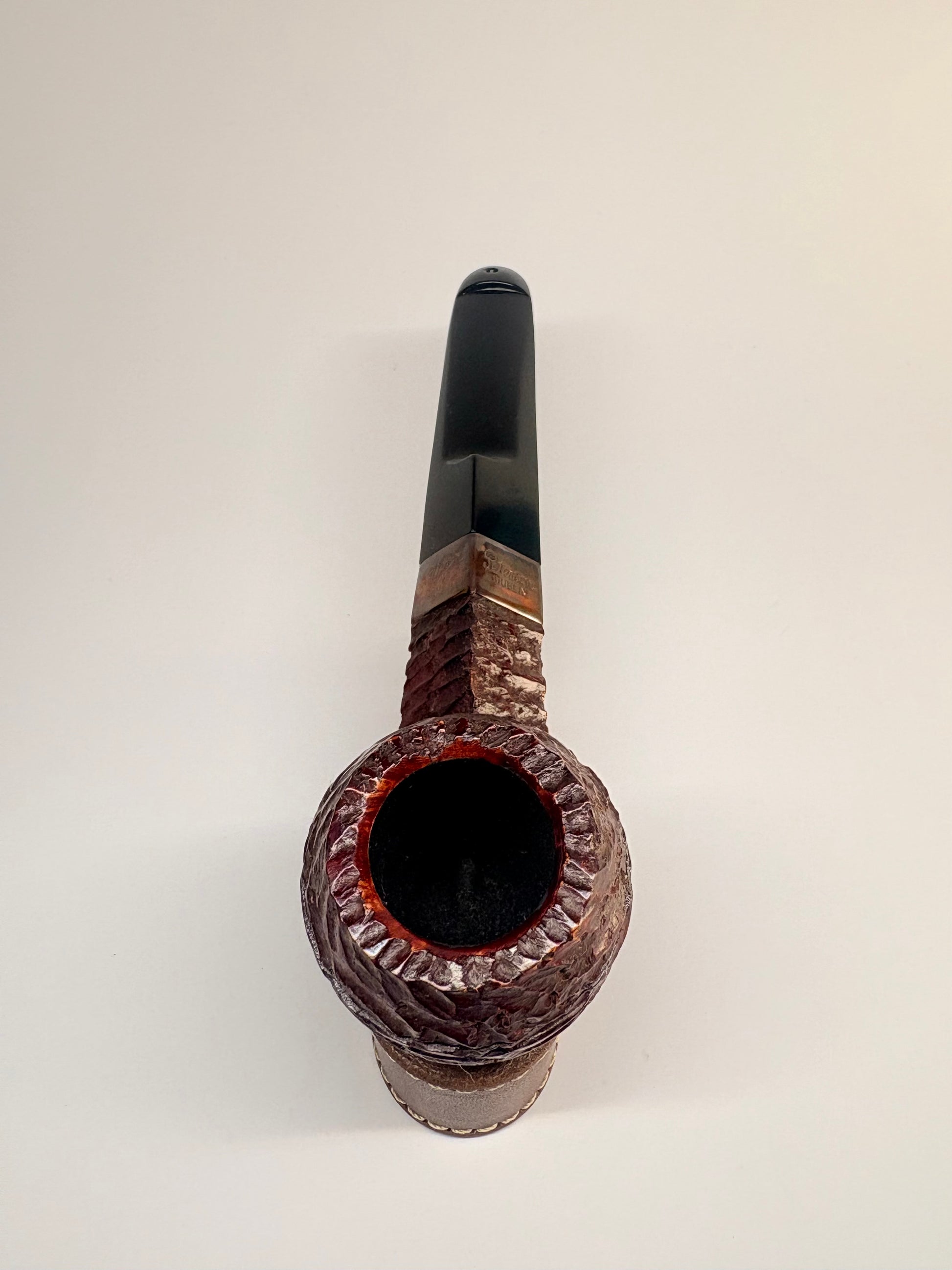 Peterson’s 2025 Christmas release in the classic Shape 150—a stout, compact bowl dressed in a rugged rusticated finish that begs to be held. Finished in a warm, festive red-brown stain and paired with a sleek black stem, it’s topped with Peterson’s signature P-Lip mouthpiece for a cool, comfortable draw. A bright “Peterson Dublin” band adds the final holiday touch, and it arrives presentation-ready in its Peterson box with the green Peterson sock.
