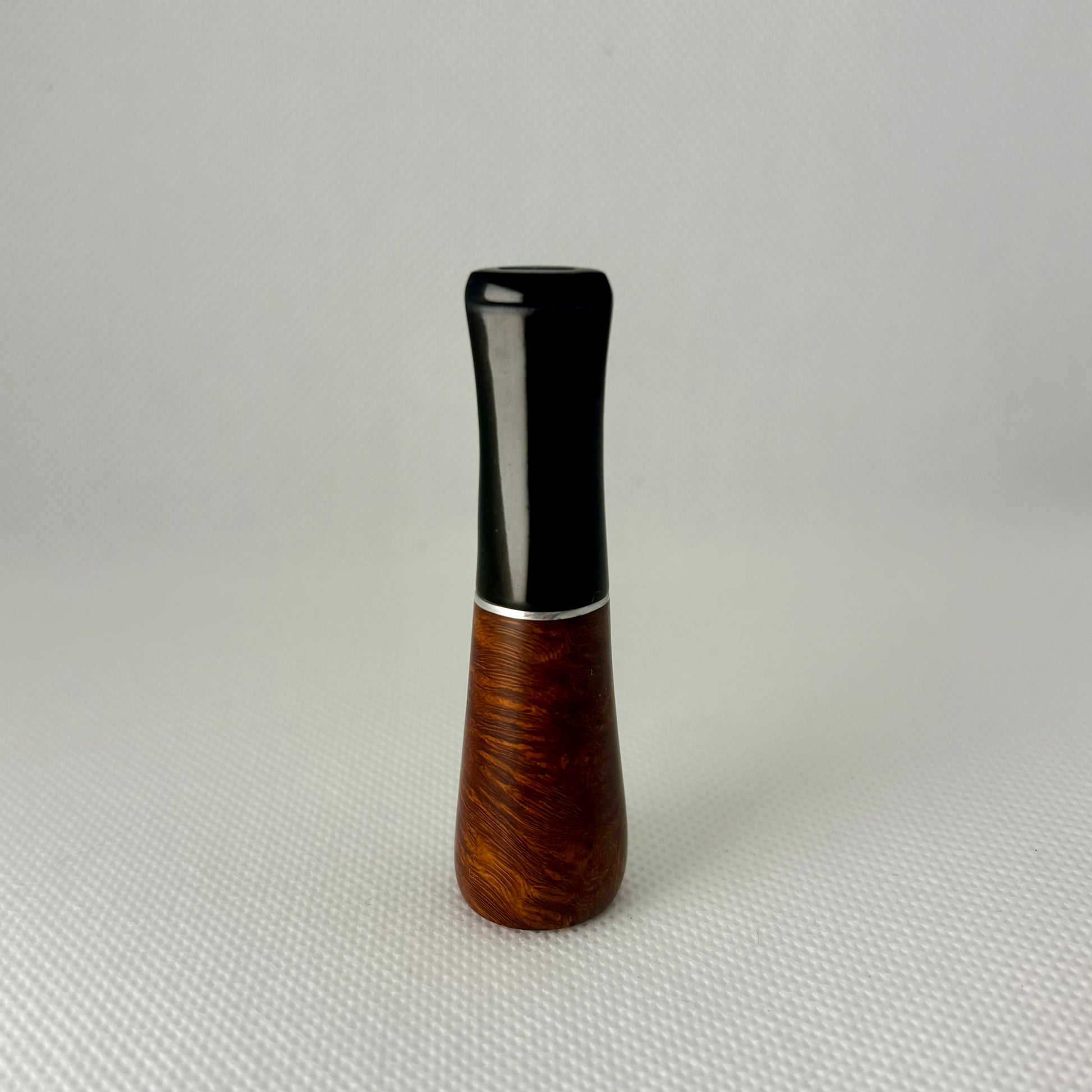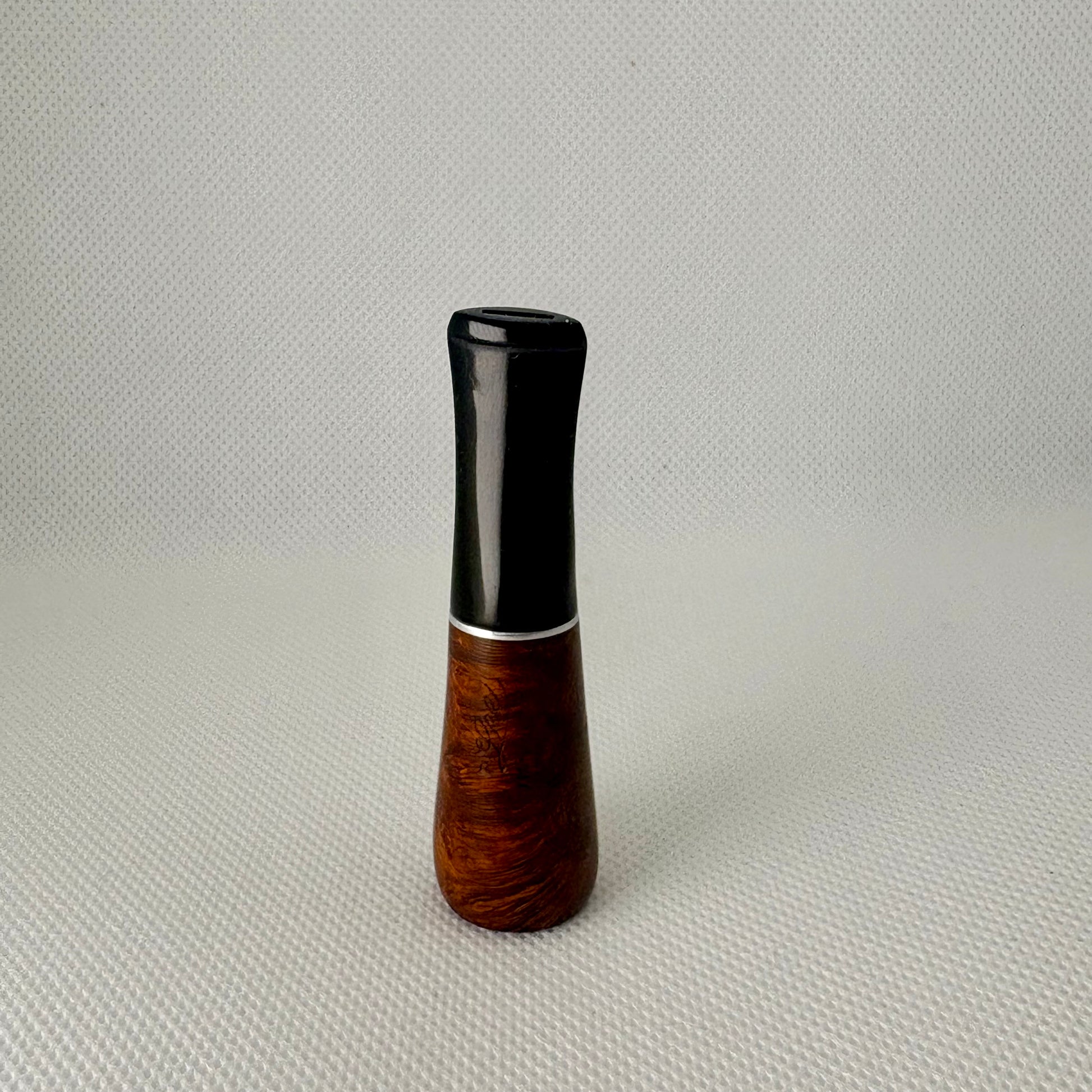 This style of cigar holder was common as an accessory in mid-20th-century smoking sets, where briar was favoured for its heat resistance and natural moisture-absorbing qualities. The piece isn’t widely documented as a major brand in pipe catalogs, but it fits historically with briar smoking accessories (similar to other mid-century imported briar products)